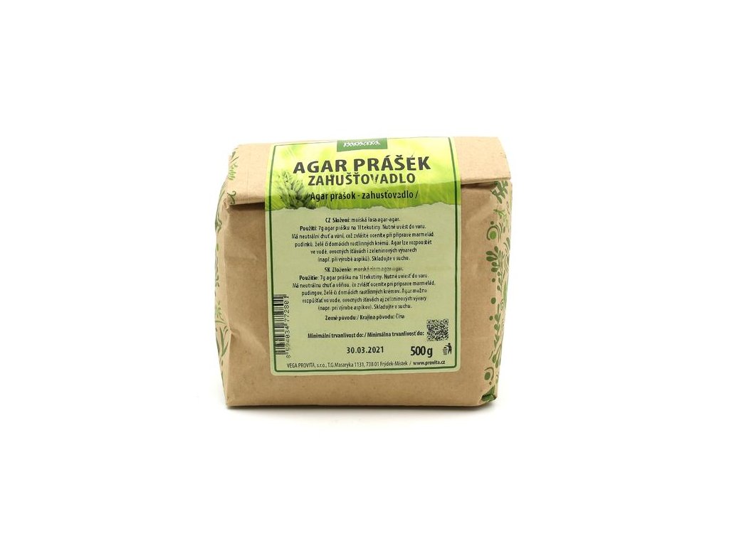 Mořská řasa Agar je velmi oblíbená v japonské a čínské kuchyni. Jedná se o vegetariánskou alternativu želatiny, kterou dokáže skvěle zastoupit. Má neutrální chuť a vůní, což zvláště oceníte při přípravě marmelád, pudinků, želé či domácích rostlinných mlék a krémů. Agar lze rozpouštět ve vodě, ovocných šťávách i zeleninových vývarech (např. při výrobě aspiků).