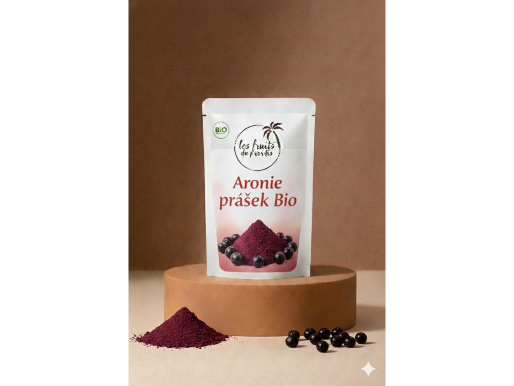 Aronie, také známá jako černý jeřáb (Aronia melanocarpa), je rostlina, která je ceněná pro své zdraví prospěšné účinky, zejména díky vysokému obsahu antioxidantů a vitamínů. Prášek z aronie se vyrábí sušením a mletím plodů a lze ho použít jako doplněk stravy.