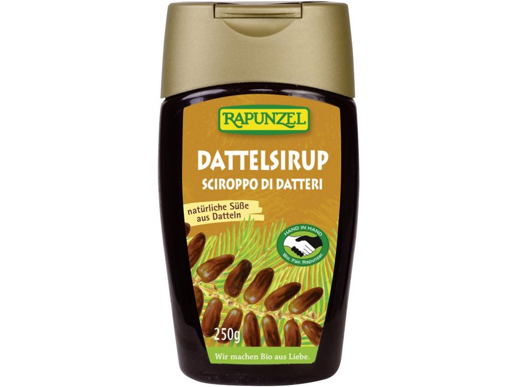 Datlový sirup se vyrábí z čerstvých tuniských datlí, vypěstovaných v rámci fair trade projektu Hand in Hand. Po vypeckování se datle povaří s vodou. Směs se poté přefiltruje a zahustí na tmavý hustý sirup. Ten dodá pokrmům kromě sladkosti i příjemnou melasově ovocnou chuť a vůni. Používáme jej na pečení a ke slazení různých pokrmů - desertů, ochucených jogurtů, müsli směsí, palačinek a kaší, ale i do orientálních pokrmů a ajurvédských snídaní. Výborný je ve sladko-kyselých marinádách. Pozor při dávkování datlového sirupu, je totiž sladší než cukr.Složení: bio datle 75%, voda