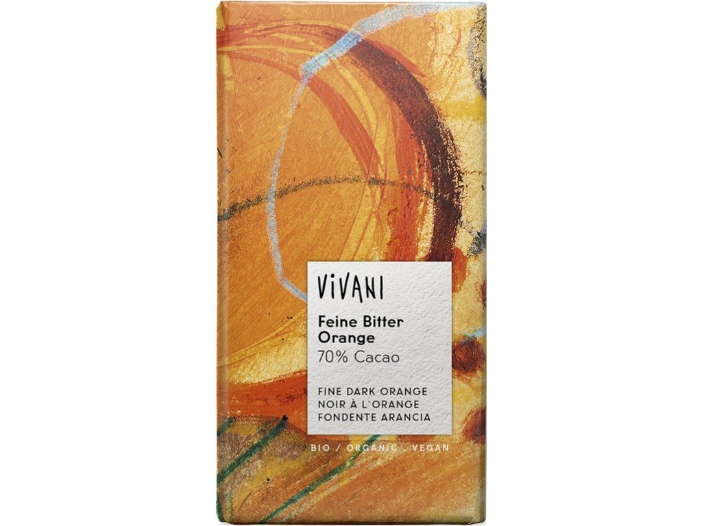Bio hořká čokoláda s pomerančem 70% Jemná hořká čokoláda s vysokým obsahem kakaa ovoněná pomerančovou silicí a oslazená přírodním třtinovým cukrem. Neobsahuje sójový lecitin ani žádný jiný emulgátor a je vhodná pro vegany. Tato čokoláda vyhrála stříbrné ocenění v roce 2006 při hodnocení provedeném Německou zemědělskou společností (DLG). Čokoláda s tradicí: Čokolády značky VIVANI jsou vyráběny německou rodinnou firmou Ludwiga Weinricha. Rodina vyrábí čokolády již déle než jedno století. Tradice a zkušenost spolu s nejlepšími bio surovinami, moderním vybavením a pečlivou kontrolou jsou zárukou vysoké kvality.