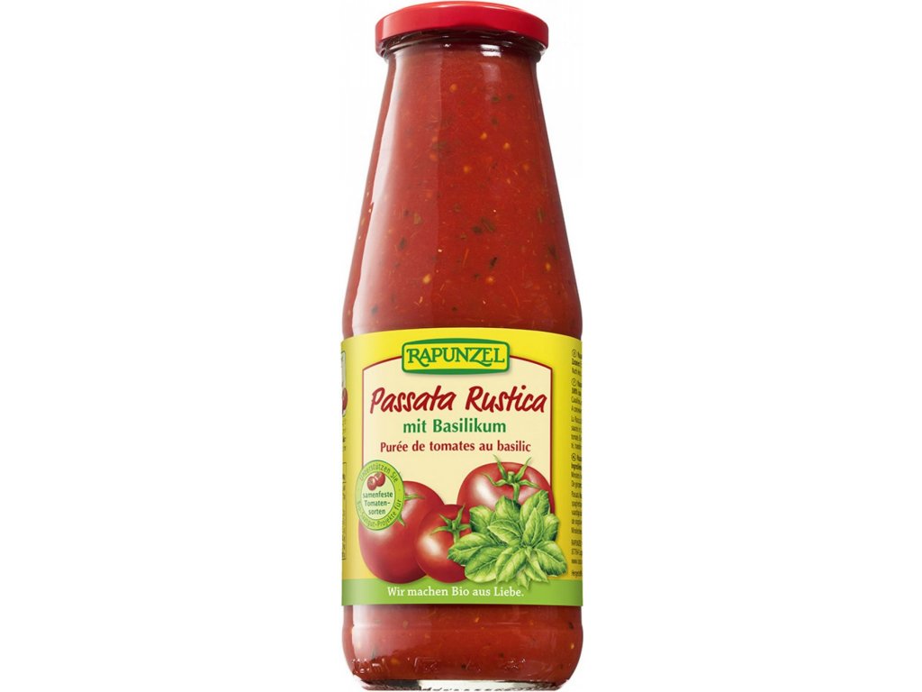Passata rustica obsahuje nahrubo drcená rajčata zjemněná čerstvou bazalkou. Tato passata byla připravena šetrným zpracováním čerstvých přirozeně na slunci do červena uzrálých rajčat, která byla vypěstována podle zásad kontrolovaného ekologického zemědělství. Rajčata uzrála ve slunečné Umbrii a po sklizni byla rychle zpracována. Výrobce passaty totiž používá pouze plody, které vyrostly na jeho vlastní ekofarmě. Rajčata se tak nemusí po sklizni dálkově transportovat a výrobce má dokonalou kontrolu nad tím, jaké plody při výrobě používá. Po sklizni se rajčata okamžitě převezou do zpracovny, kde jsou oloupána, zahřána a propasírována přes hrubé síto. Poté se přidá bazalka, směs se naplní do lahviček a po uzavření je výrobek pasterován. Na rozdíl od rajského protlaku se při výrobě passata nezahušťuje a tak si uchovává více přirozené chuti a vůně rajčat než rajský protlak. Můžeme ji použít místo rajčat do omáček a polévek v případě, že nám doma chybí čerstvá rajčata, nebo pokud se chceme vyhnout jejich zdlouhavému zpracování. Passata rustica tvoří ideální základ omáček na těstoviny, polévek a zeleninových směsí.