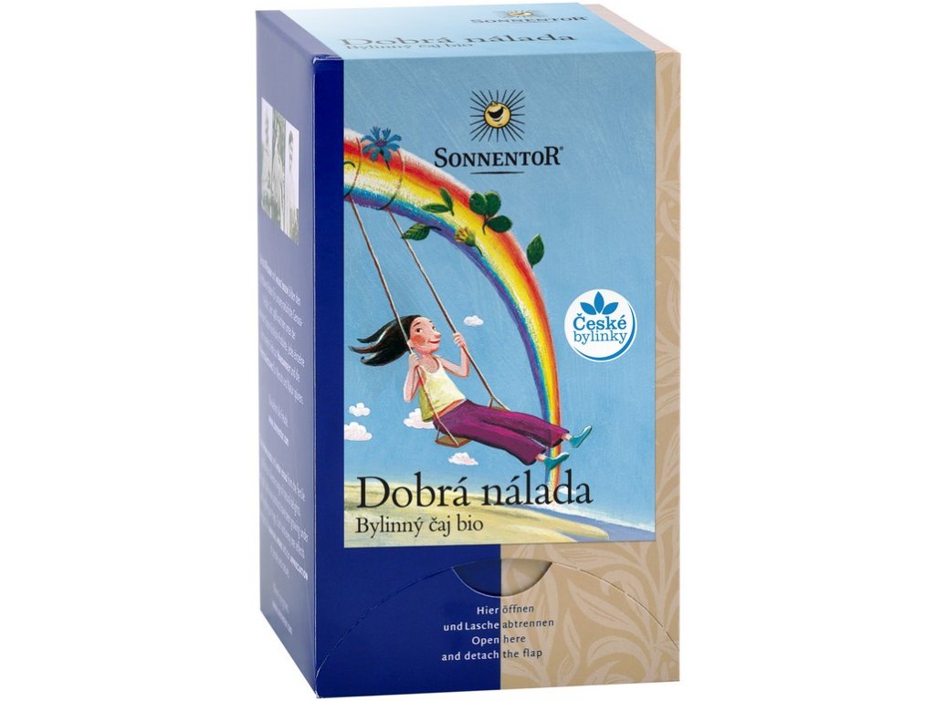 Dobrá nálada je nejstarší a možná nejoblíbenější bylinnou čajovou směsí Sonnentoru. Je v ní to nejlepší, co bylinky našeho kraje nabízejí, a chutná jak dospělým, tak dětem. Když si do čaje přidáte pár kapek citronu, vykouzlíte vynikající čajovou specialitu pro každou příležitost. S oblibou se říká, že dobrá nálada se šíří rychle a s tímto čajem určitě vykouzlíte úsměv na tváři.