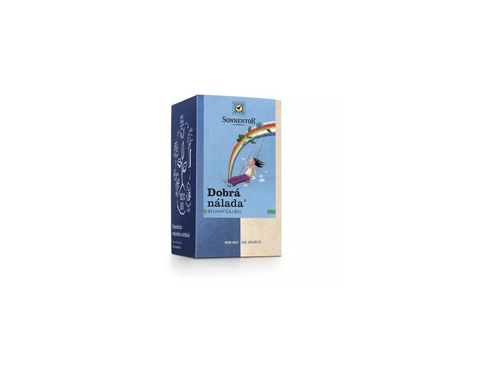 Dobrá nálada je nejstarší a možná nejoblíbenější bylinnou čajovou směsí Sonnentoru. Je v ní to nejlepší, co bylinky našeho kraje nabízejí a chutná jak dospělým, tak dětem. Když si do čaje přidáte pár kapek citronu, vykouzlíte vynikající čajovou specialitu pro každou příležitost. S oblibou se říká, že dobrá nálada se šíří rychle a s tímto čajem určitě vykouzlíte úsměv na tváři.