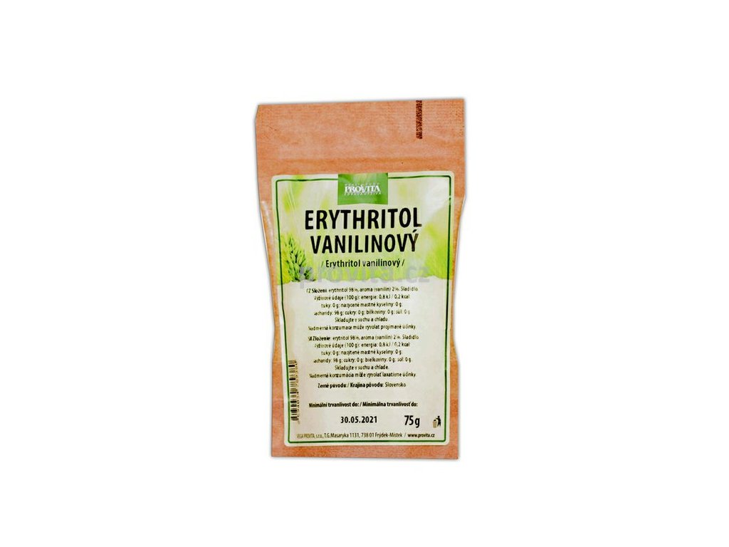 Složení: erythritol, aroma (vanilín) 2%.
