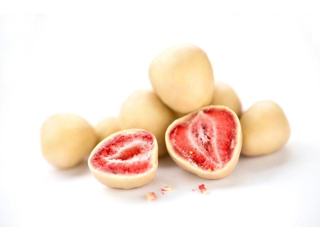 Jahody mrazem sušené v jogurtu aneb jedinečná a luxusní pochoutka kombinující svěží chuť zralých jahod s krémovou jemností jogurtu. Tyto sušené jahody jsou obaleny v lahodném jogurtu, čímž vzniká vyvážená směs křupavé textury a jemné chuti. Sušení mrazem zajišťuje, že jahody si uchovávají většinu svých nutričních hodnot a intenzivní přírodní barvu. Tento proces také pomáhá zachovat přirozenou sladkost a svěžest ovoce.