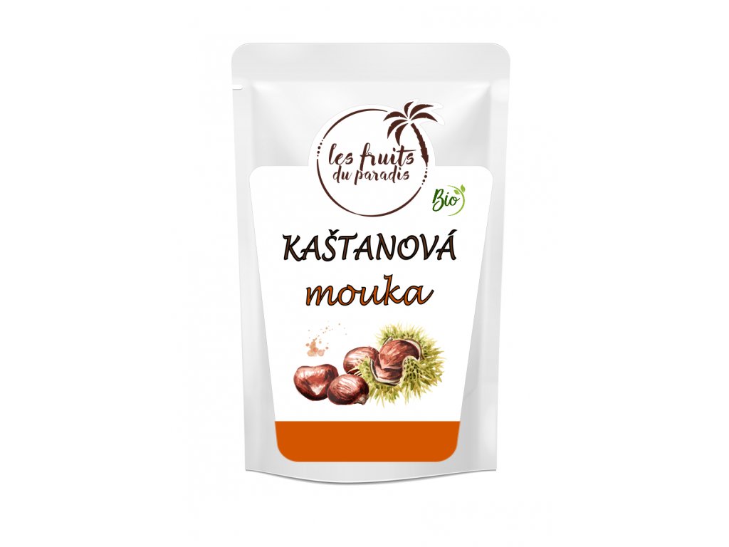 Kaštanová mouka BIO je vyrobena z rozemletých kaštanů. Ty jsou bohaté na vitamíny, minerály a vlákninu. Vláknina pomáhá zdravému trávení a snižuje hladinu cholesterolu v krvi. Mouka je bezlepková, takže je vhodná pro zákazníky s celiakií nebo nesnášenlivostí lepku.Je typická svou sladkou a jemnou chutí. Hodí se pro přípravu dezertů, moučníků nebo sladkých pečených pokrmů. Lze ji použít i k zahuštění polévek nebo omáček.