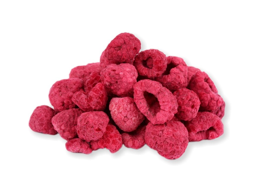 jsou vynikající jemné, křupavé a voňavé celé plody malin, které byly po sběru ošetřeny lyofilizací neboli mrazem. Ovoce sušené hlubokým mrazem za velmi nízkého tlaku si zachovává maximum vitamínů, minerálů a dalších nutričních látek, navíc chutná a voní jako čerstvé plody, takže si požitek z malin provoněných letním sluncem můžete dopřávat po celý rok.