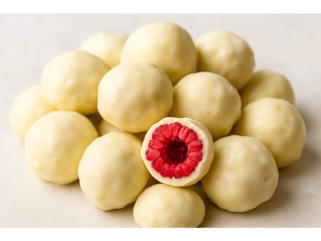 Objevte jedinečnou delikatesu – lyofilizované maliny v bílé čokoládě české výroby. Křupavé, mrazem sušené maliny si díky procesu lyofilizace zachovávají přirozenou barvu, intenzivní chuť i cenné vitamíny. Jsou obalené v prémiové bílé čokoládě (89 %), vyrobené z kakaového másla, sušeného mléka a pravého vanilkového extraktu. Výsledkem je dokonalá harmonie jemné nasládlé chuti a svěží ovocné kyselosti.
