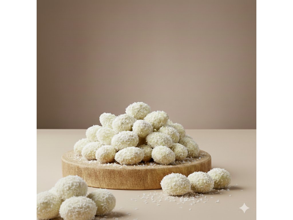 Křehce blanšírované mandle jsou obalené v jemné bílé čokoládě s kousky pravé vanilky a doplněné o voňavý kokosový akcent. Výsledkem je vyvážená chuť – sladká, krémová a lehce exotická.