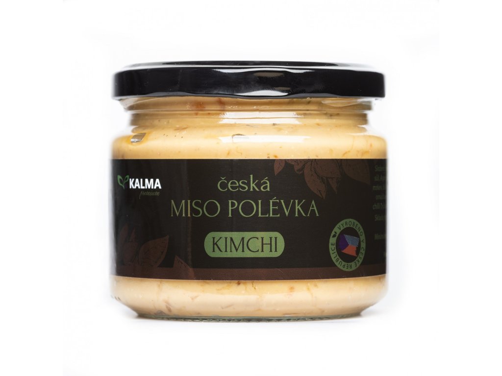 Složení: miso pasta sójová (rýže, sója, voda, mořská sůl, Aspergillus oryzae), kimchi 33 % (pekingské zelí, mrkev, bílá ředkev Daikon, jablko, jarní cibulka, sójová omáčka (voda, sójové boby, pšenice, sůl), korejské chilli, rýžová mouka, třtinový cukr, zázvor, česnek, sůl).