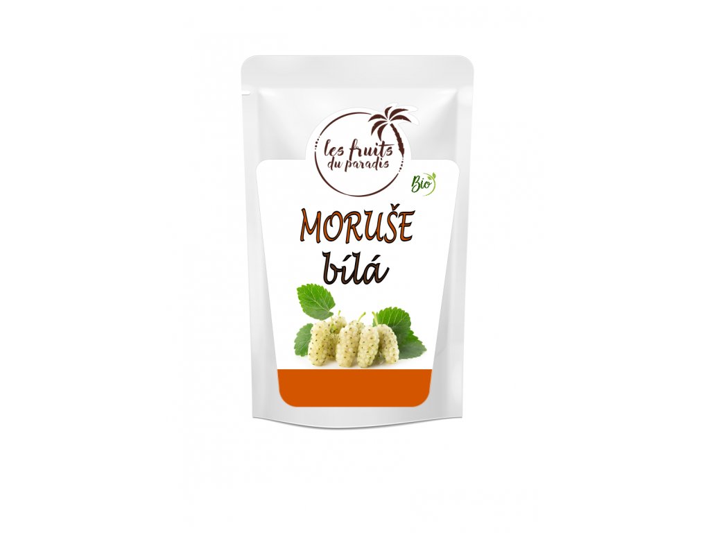 Moruše bílá. Ta pochází z Číny, odkud se rozšířila do Středomoří a na teplejší evropská místa. Strom moruše bílé dorůstá výšky až 15 metrů. Plody mají krémovou až lehce narůžovělou barvu. Oproti moruši černé mají jemnější, zato medově sladkou chuť.