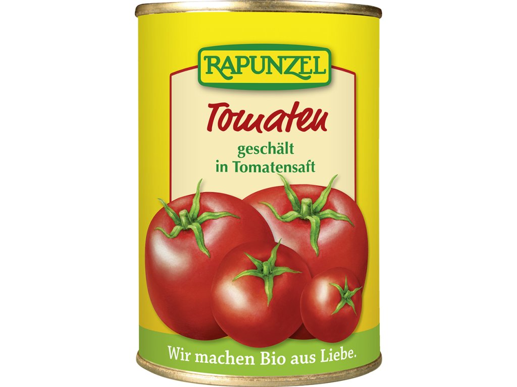 Tato celá loupaná rajčata naložená v rajčatové šťávě byla vyrobena v Itálii z čerstvých bio rajčat uzrálých na slunci do červena. Během šetrné přípravy si rajčata uchovávají přirozenou chuť, zvýrazněnou naložením do šťávy z rajčat. Jsou vynikající do omáček na těstoviny, do zeleninových pokrmů, na pizzu...